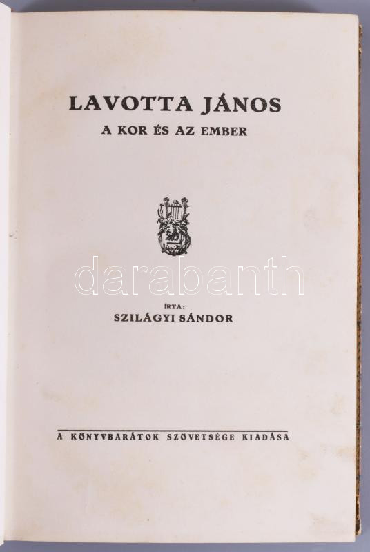 Szilágyi Sándor: Lavotta János. A kor és az ember. Bp., é.n., Könyvbar... https://www.darabanth.com/de/513-Auktion-Philatelie-Postkarten-Numismatik-Kunstwerke-Bucher-Schreibwaren-Schmuck/513.0/Bucher/Bucher-Geschichte~159/Szilagyi-Sandor-Lavotta-Janos-A-kor-es-az-ember-Bp-en-Konyvbaratok-Szovetsege-150p~II3472807