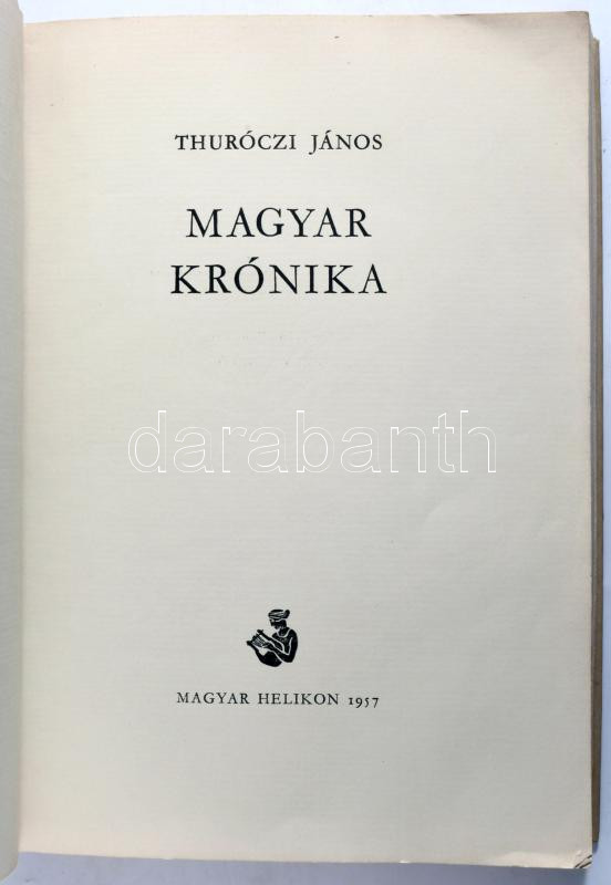 Thuróczi János: Magyar Krónika. Ford. és jegyzetekkel ellátta: Geréb László. A szövegeket átnézte és a bevezetést írta: Kardos Tibor. Monumenta Hungarica I. Bp., 1957, Magyar Helikon. Kiadói aranyozott pergamen-kötés, kissé vetemedett