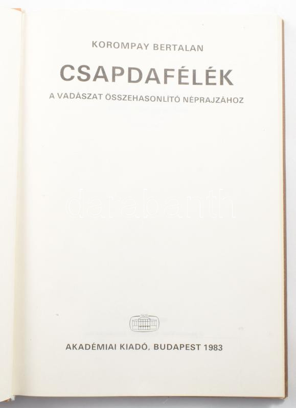Korompay Bertalan: Csapdafélék. A vadászat összehasonlító néprajzához.... https://www.darabanth.com/de/513-Auktion-Philatelie-Postkarten-Numismatik-Kunstwerke-Bucher-Schreibwaren-Schmuck/513.0/Bucher/Bucher-Jagd~163/Korompay-Bertalan-Csapdafelek-A-vadaszat-osszehasonlito-neprajzahoz-Bp-1983-Akademiai~II3472778