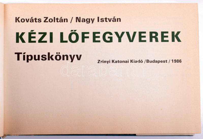 Kováts Zoltán - Nagy István: Kézi lőfegyverek. Típuskönyv. Bp., 1986, ... https://www.darabanth.com/de/513-Auktion-Philatelie-Postkarten-Numismatik-Kunstwerke-Bucher-Schreibwaren-Schmuck/513.0/Bucher/Bucher-Militaria~160/Kovats-Zoltan-Nagy-Istvan-Kezi-lofegyverek-Tipuskonyv-Bp-1986-Zrinyi-370plus2-p-Kia~II3445816