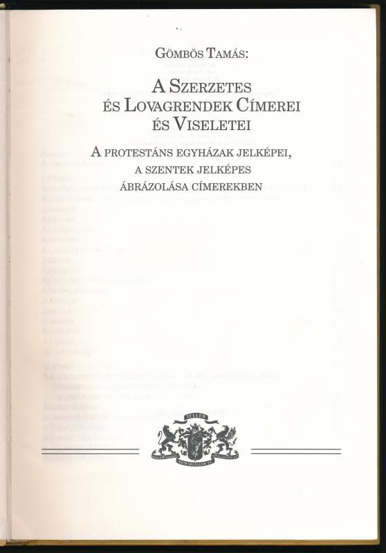 Gömbös Tamás: A szerzetes és lovagrendek címerei és viseletei. A protestáns egyházak jelképei, a szentek jelképes ábrázolása címerekben. 1993, Tellér. Kiadói kartonált kötés, jó állapotban.