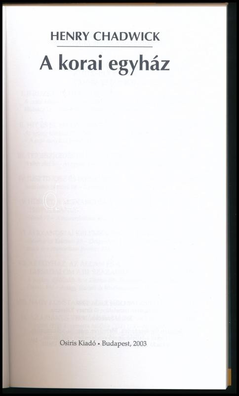 Henry Chadwick: A korai egyház. Osiris Kiadó, 1999. Kiadói papírkötés https://www.darabanth.com/de/513-Auktion-Philatelie-Postkarten-Numismatik-Kunstwerke-Bucher-Schreibwaren-Schmuck/513.0/Bucher/Bucher-Religion~170/Henry-Chadwick-A-korai-egyhaz-Osiris-Kiado-1999-Kiadoi-papirkotes~II3460472