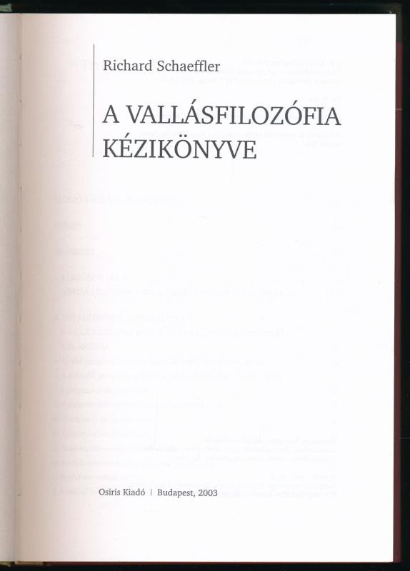 Richard Schaeffler: A vallásfilozófia kézikönyve. Ford.: Czakó István, Hankovszky Tamás. A függeléket: Görföl Tibor fordította. Bp., 2003, Osiris. Kiadói kartonált papírkötés.