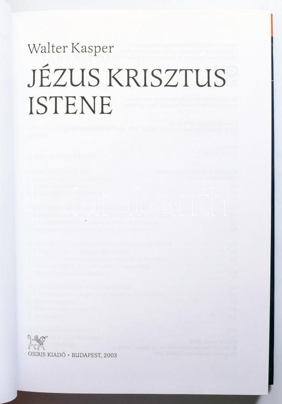 Walter Kasper: Jézus Krisztus Istene. Ford.: Görföl Tibor. Bp., 2003, ... https://www.darabanth.com/de/513-Auktion-Philatelie-Postkarten-Numismatik-Kunstwerke-Bucher-Schreibwaren-Schmuck/513.0/Bucher/Bucher-Religion~170/Walter-Kasper-Jezus-Krisztus-Istene-Ford-Gorfol-Tibor-Bp-2003-Osiris-Kiadoi-kartonalt-~II3465667