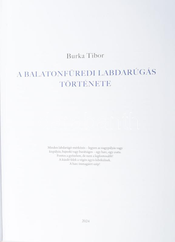 Burka Tibor: A Balatonfüredi labdarúgás története. 1924-2024. [Balaton... https://www.darabanth.com/de/513-Auktion-Philatelie-Postkarten-Numismatik-Kunstwerke-Bucher-Schreibwaren-Schmuck/513.0/Bucher/Bucher-Sport-Schach-Bergsteigen~157/Burka-Tibor-A-Balatonfuredi-labdarugas-tortenete-1924-2024-Balatonfured-2024-Balatonfure~II3468858