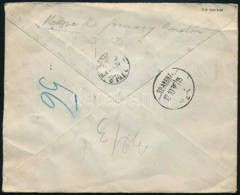 Kína 1936 Ajánlott levél Shanghaiból Budapestre https://www.darabanth.com/de/513-Auktion-Philatelie-Postkarten-Numismatik-Kunstwerke-Bucher-Schreibwaren-Schmuck/513.0/Erlesene-Lose-und-Sammlungen-Ausland/Einzelne-Gebotslose-Weltweit~8/Kina-1936-Ajanlott-level-Shanghaibol-Budapestre~II3471649