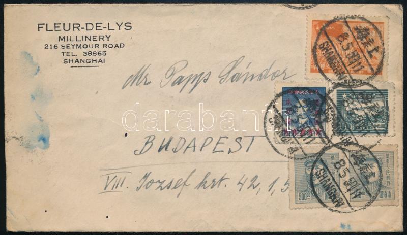 Kínai Népköztársaság 1950 Levél Shanghaiból Budapestre https://www.darabanth.com/de/513-Auktion-Philatelie-Postkarten-Numismatik-Kunstwerke-Bucher-Schreibwaren-Schmuck/513.0/Erlesene-Lose-und-Sammlungen-Ausland/Einzelne-Gebotslose-Weltweit~8/Kinai-Nepkoztarsasag-1950-Level-Shanghaibol-Budapestre~II3471648
