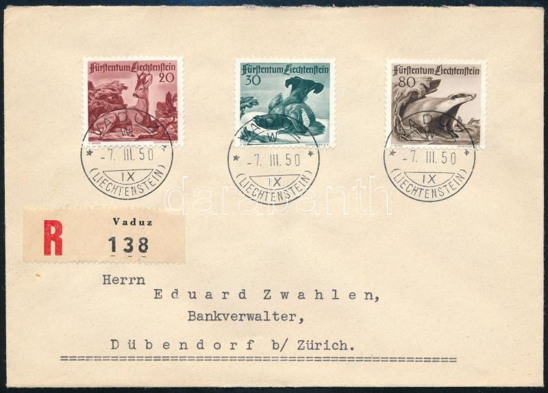 Liechtenstein 1950 Vadászat Mi 285-287 FDC (Mi EUR 150.-) https://www.darabanth.com/de/513-Auktion-Philatelie-Postkarten-Numismatik-Kunstwerke-Bucher-Schreibwaren-Schmuck/513.0/Erlesene-Lose-und-Sammlungen-Ausland/Einzelne-Gebotslose-Weltweit~8/Liechtenstein-1950-Vadaszat-Mi-285-287-FDC-Mi-EUR-150-~II3467417