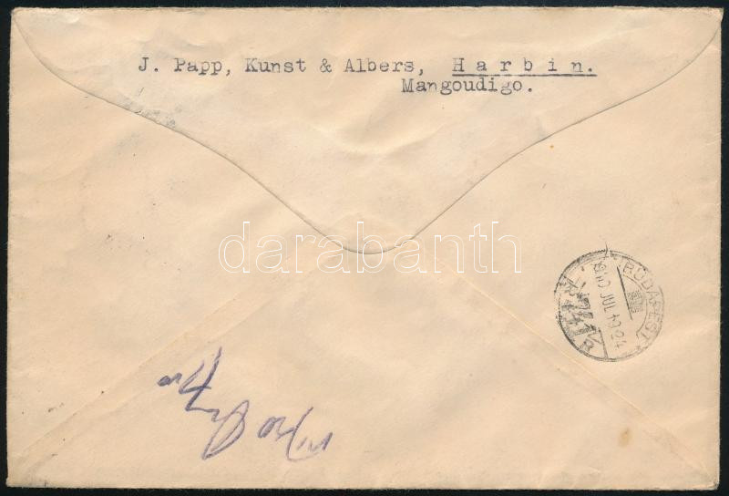 Mandzsúria 1940 Ajánlott levél Harbinból Budapestre https://www.darabanth.com/de/513-Auktion-Philatelie-Postkarten-Numismatik-Kunstwerke-Bucher-Schreibwaren-Schmuck/513.0/Erlesene-Lose-und-Sammlungen-Ausland/Einzelne-Gebotslose-Weltweit~8/Mandzsuria-1940-Ajanlott-level-Harbinbol-Budapestre~II3471647