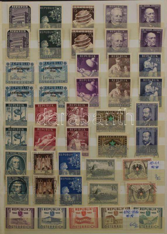 Hatalmas osztrák tétel, benne gyűjtemények, gyűjtemény részek, rendezők, ívek, küldemények, FDC-k, sok jó időszakkal, jó kiadásokkal, rengeteg bélyeg összesen 27 db berakóban és albumban, 2 nagy hullámkarton ládában. Érdemes átnézni!