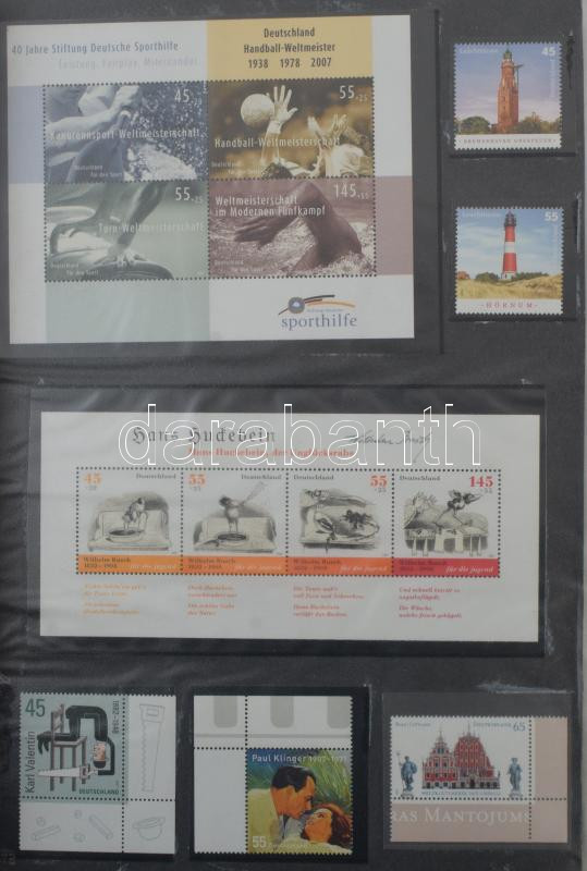 Szép és láthatólag teljes postatiszta NSZK gyűjtemény 2004-2012 blokkokkal, füzetlapokkal, 10-es ívekkel házi készítésű falcmentes lapokon, DAVO gyűrűs borítóban. (Postai érték / postal value min EUR 500.-)