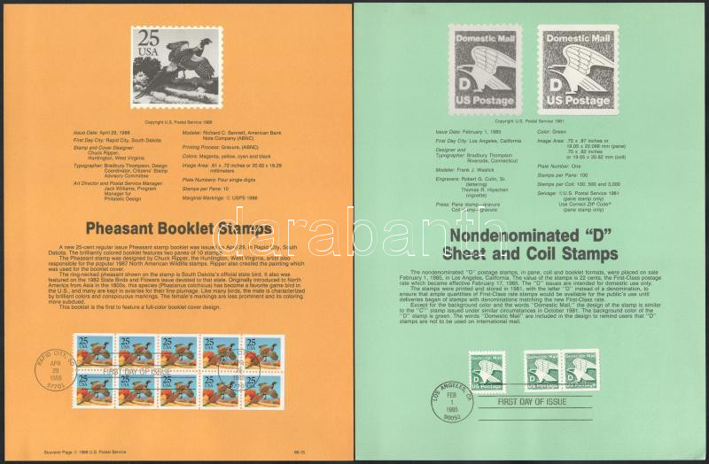 Beschreibung: USA 140 db A4-es méretű emléklap elsőnapi bélyegzésekkel, 381 db bélyeggel és 4 db blokkal