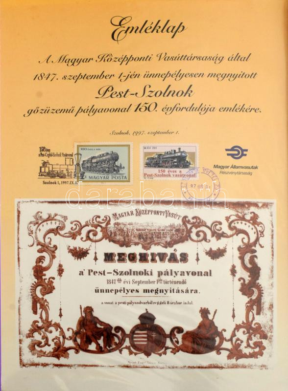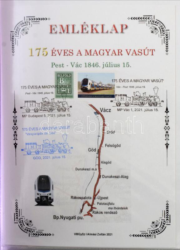 80 db magyar és egykori vasútvonali és kisvasútvonali, HÉV vonali, városi villamosok emléklapjai, posta, levélzáró és megszemélyesített bélyegekkel, blokkokkal, emlékbélyegzésekkel, iratlefűzőben