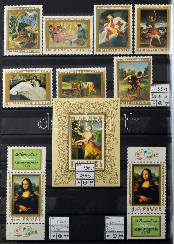 Beschreibung: Festmény motívum gyűjtemény sorokkal és blokkokkal, 16 lapos A/4-es berakó több mint felében