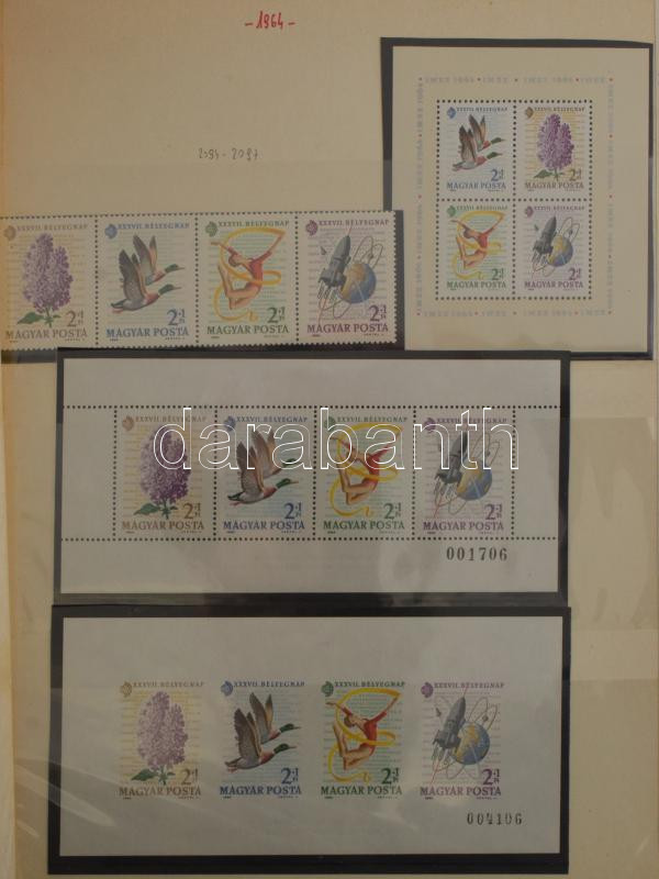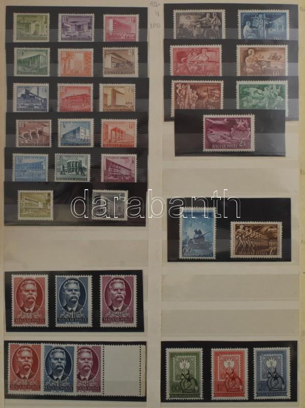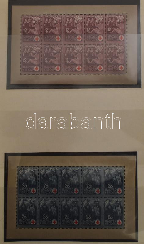 Gondosan kezelt, tartalmas magyar gyűjtemény 1913-tól 2017-ig hagyatékból. Az anyag 9 nagy rugós ABRIA berakóban van elhelyezve, sok jobb kiadást tartalmaz, bár az 1960 előtti rész nem teljesen komplett. Minden bélyeg, blokk, kisív külön filázva van!! Így is rendkívül magas katalógus érték, a nagy névértékű modern anyag mellett a korszak számos emlékívét is tartalmazza. Banános kartonban.