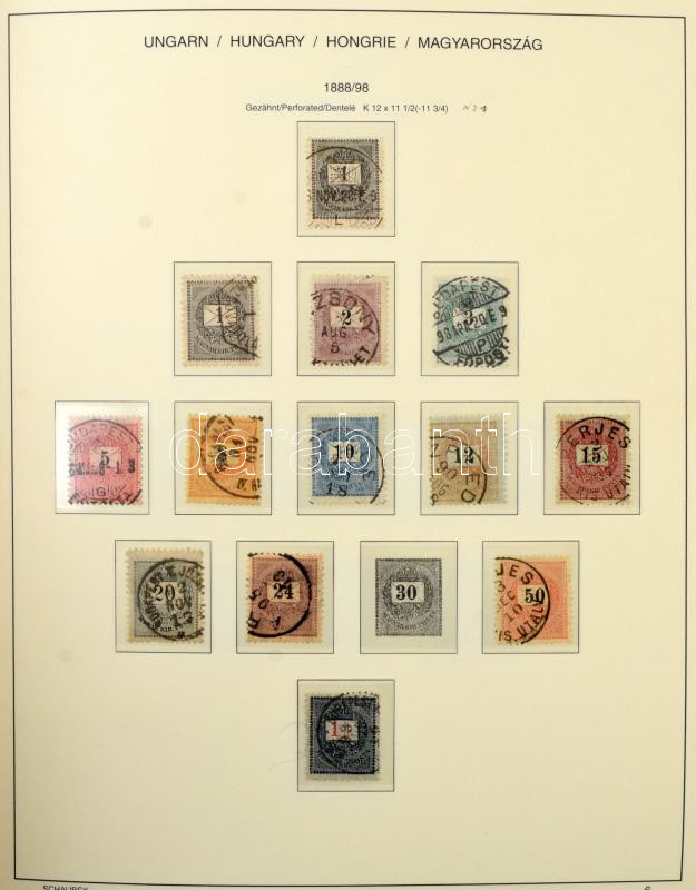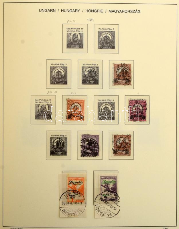 Beschreibung: Magyar gyűjtemény a Krajcárosoktól 1944-ig, sorokkal, blokkokkal, portókkal, előnyomott albumban, csavaros borítóval, tokkal