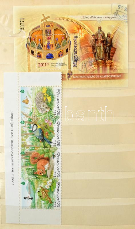 Beschreibung: Sok száz darab Magyarország feliratú bélyeg, blokk, összefüggés közepes berakóban + ömlesztett darabok zacskóban