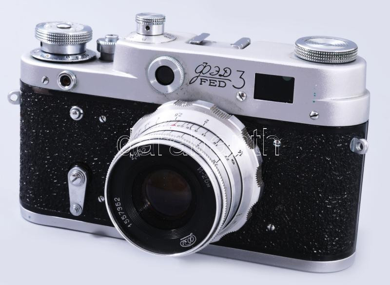 Fed-3 fényképezőgép, Fed 2,8 objektívvel, bőr tokban.