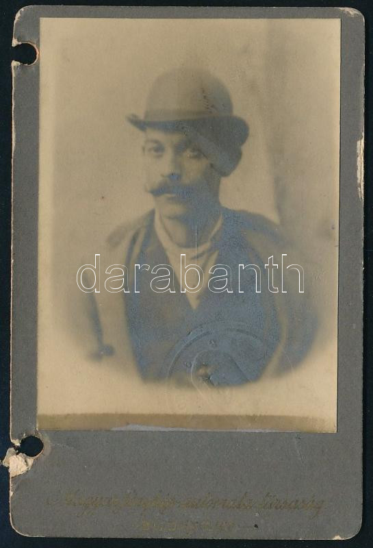 Beschreibung: cca 1896 Férfiportré igazolványként használva, keményhátú fotó, Magyar Fényképautomata Társaság, lyukasztásnyommal, 9,5×6,5 cm