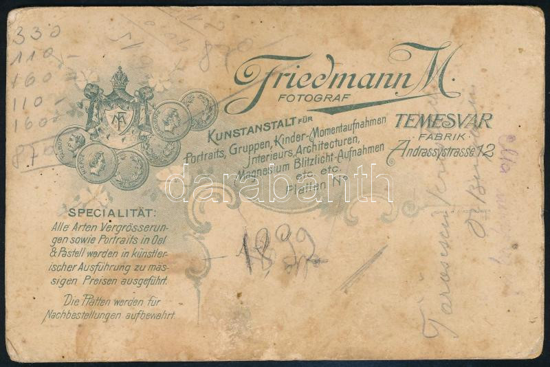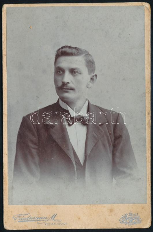 cca 1900 Elegáns férfi portréja, kabinetfotó Friedmann M. temesvári (T... https://www.darabanth.com/de/513-Auktion-Philatelie-Postkarten-Numismatik-Kunstwerke-Bucher-Schreibwaren-Schmuck/513.0/Fotografie/Foto~84/cca-1900-Elegans-ferfi-portreja-kabinetfoto-Friedmann-M-temesvari-Timisoara-mutermebol-~II3472490