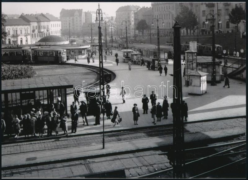 Beschreibung: cca 1939 Budapest, Széll Kálmán tér, 1 db modern nagyítás, jelzés nélkül, 15x21 cm