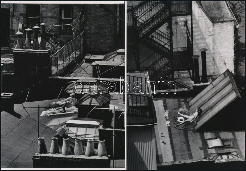 cca 1954 André Kertész - korábban Kertész Andor (1894-1985) magyar - francia - amerikai fotóművész felvételei (New York-i háztetők), 2 db modern nagyítás, jelzés nélkül, 21x15 cm