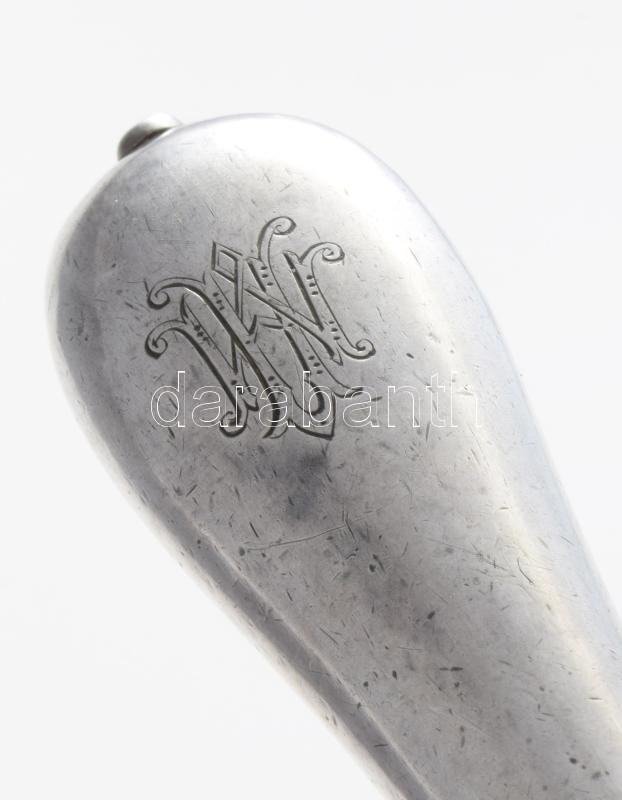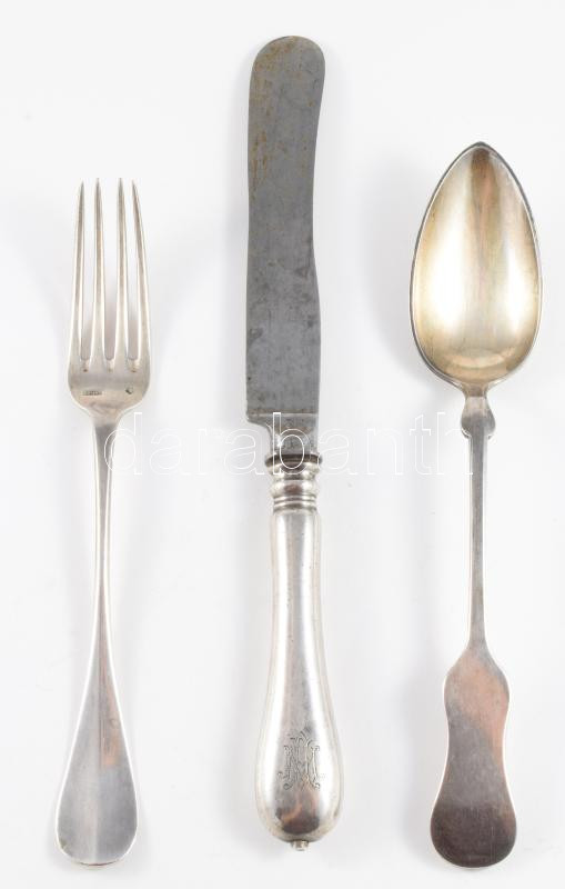 Ezüst (Ag) kanál, villa, kés jelzett Dianás, Latzkó mesterjeggyel. Net... https://www.darabanth.com/de/513-Auktion-Philatelie-Postkarten-Numismatik-Kunstwerke-Bucher-Schreibwaren-Schmuck/513.0/Juwellen-und-Kunstobjekte-aus-Edelmetall/Juwellen-und-Kunstobjekte-aus-Edelmetall~1022/Ezust-Ag-kanal-villa-kes-jelzett-Dianas-Latzko-mesterjeggyel-Netto-132-g-plus-ezust-nyelu-kes~II3470857