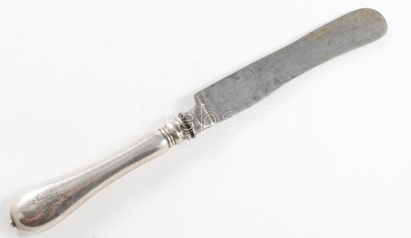 Beschreibung: Ezüst (Ag) kanál, villa, kés jelzett Dianás, Latzkó mesterjeggyel. Nettó 132 g + ezüst nyelű kés
