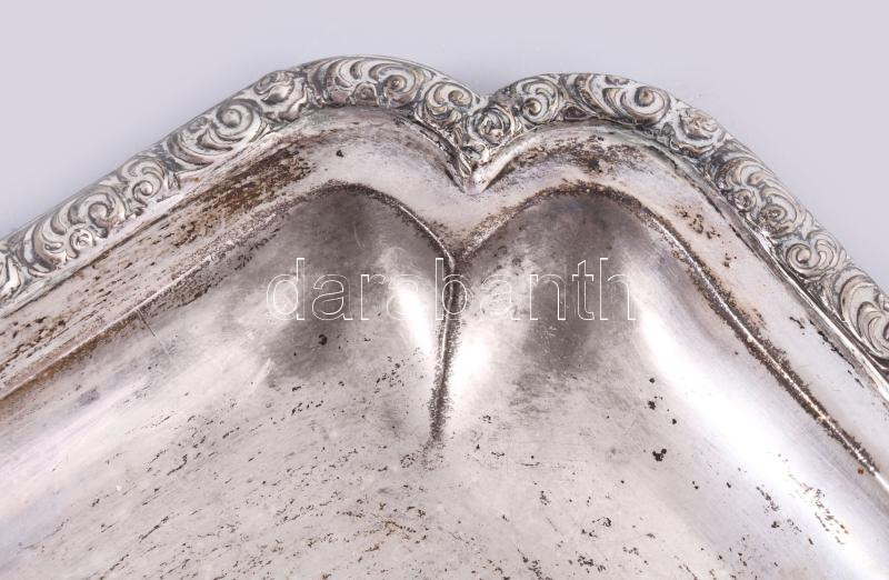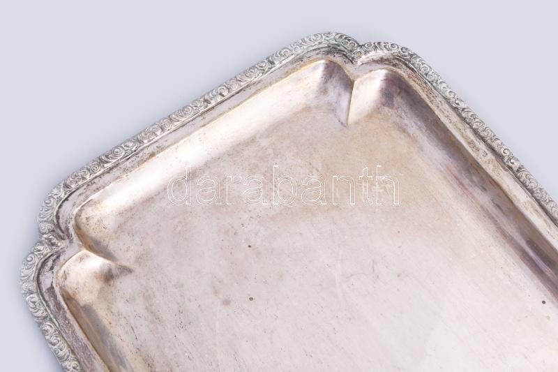 Ezüst (Ag) tálca ismétlődő rózsamintás peremrésszel, 32x15 cm, jelzett... https://www.darabanth.com/de/513-Auktion-Philatelie-Postkarten-Numismatik-Kunstwerke-Bucher-Schreibwaren-Schmuck/513.0/Juwellen-und-Kunstobjekte-aus-Edelmetall/Juwellen-und-Kunstobjekte-aus-Edelmetall~1022/Ezust-Ag-talca-ismetlodo-rozsamintas-peremresszel-32x15-cm-jelzett-netto-328g~II3455611