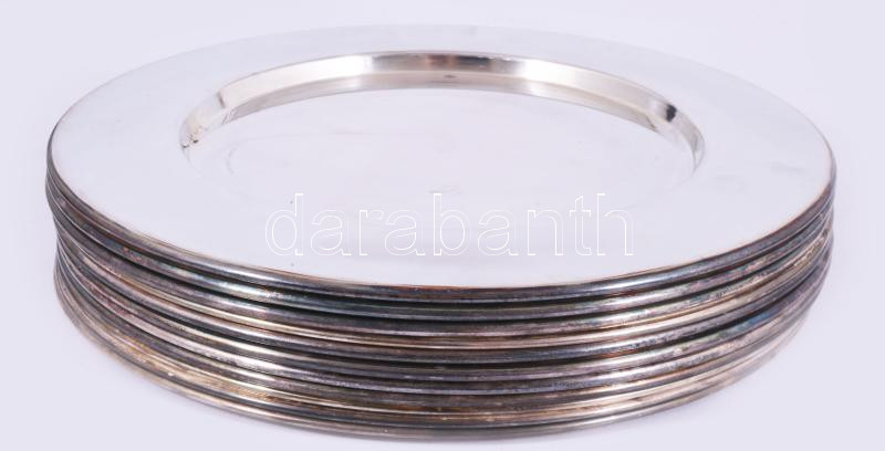 Beschreibung: 11 darabos ezüstözött tányér garnitúra, d: 29 cm