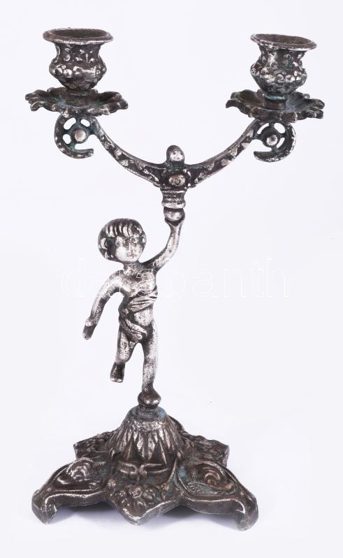 Beschreibung: Antik ón puttó figurás kétágú gyertyatartó, m: 29 cm