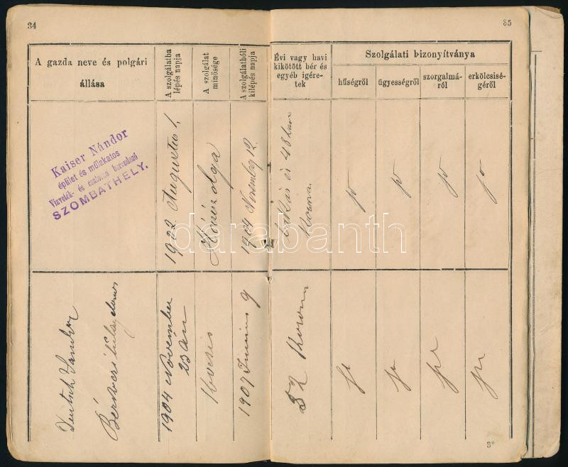 1887 Szolgálati cselédkönyv, fényképpel ragasztott gerinccel https://www.darabanth.com/de/513-Auktion-Philatelie-Postkarten-Numismatik-Kunstwerke-Bucher-Schreibwaren-Schmuck/513.0/Kunst-Dokumente-andere-Sammelgebiete/Dokument~80/1887-Szolgalati-cseledkonyv-fenykeppel-ragasztott-gerinccel~II3466139