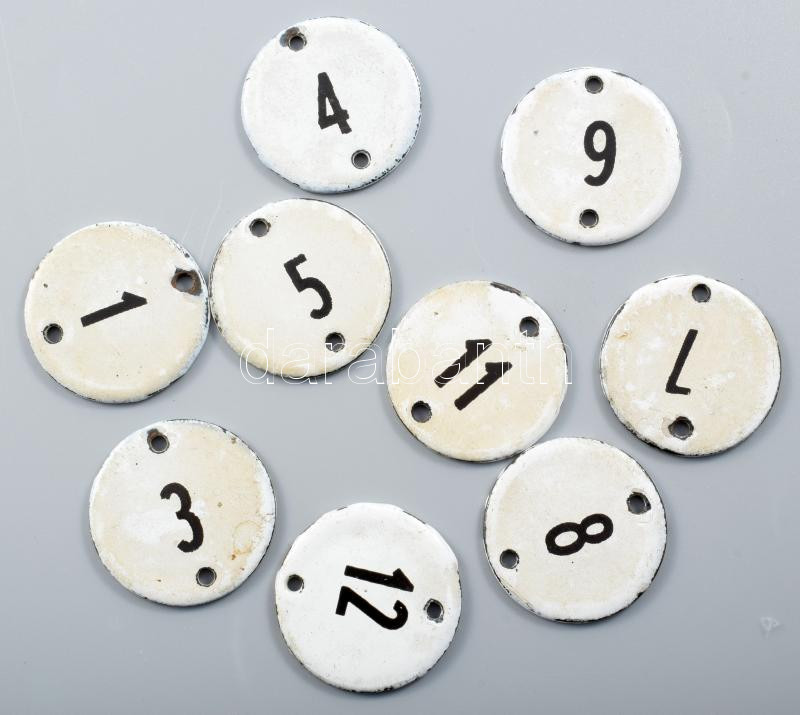 9 db zománc fém számtábla d: 3 cm https://www.darabanth.com/de/513-Auktion-Philatelie-Postkarten-Numismatik-Kunstwerke-Bucher-Schreibwaren-Schmuck/513.0/Kunst-Dokumente-andere-Sammelgebiete/Flohmarkt~65/9-db-zomanc-fem-szamtabla-d-3-cm~II3472818
