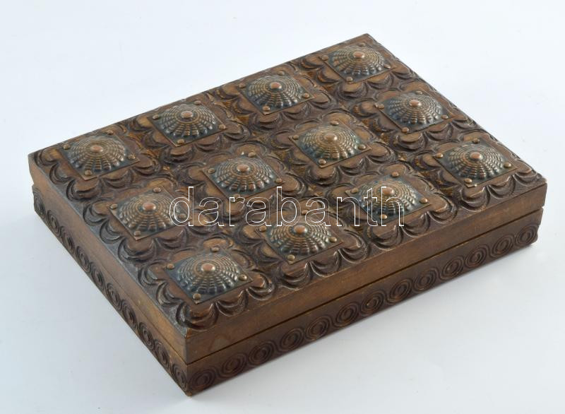 Iparművész fa doboz, réz rátétekkel, 12x16 cm https://www.darabanth.com/de/513-Auktion-Philatelie-Postkarten-Numismatik-Kunstwerke-Bucher-Schreibwaren-Schmuck/513.0/Kunst-Dokumente-andere-Sammelgebiete/Flohmarkt~65/Iparmuvesz-fa-doboz-rez-ratetekkel-12x16-cm~II3427731