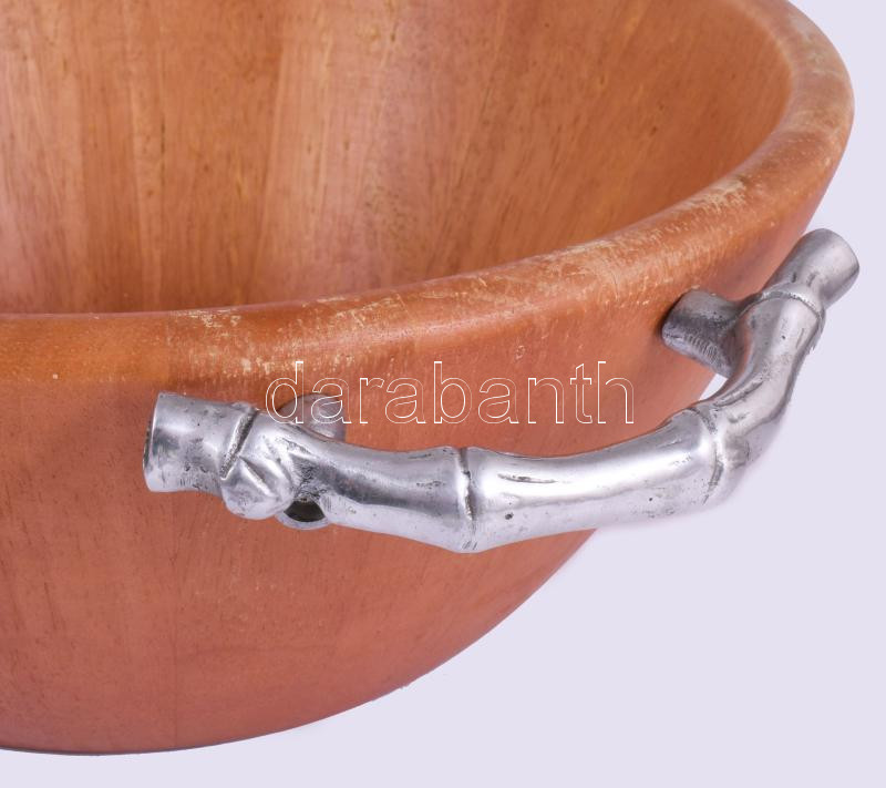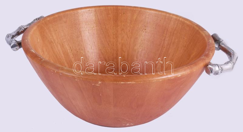 Beschreibung: Nagyméretű fa salátás tál, fém fogóval, kis kopással, d: 35 cm