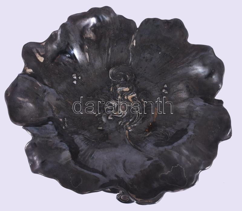 Beschreibung: Szecessziós asztali fém kínáló tál. Jelzés nélkül, d: 23 cm, m: 18,5 cm