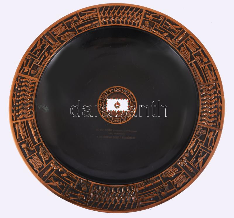 Beschreibung: 1985 Réz dísztál Beviz Tibor ezredes elvtársnak a HM Titkárság személyi állományától, d: 37 cm