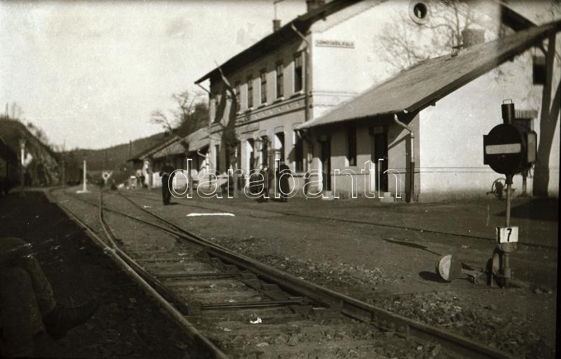 Beschreibung: Somoskőújfalu vasútállomás katonákkal, 3 db fotónegatív, 9×12 cm