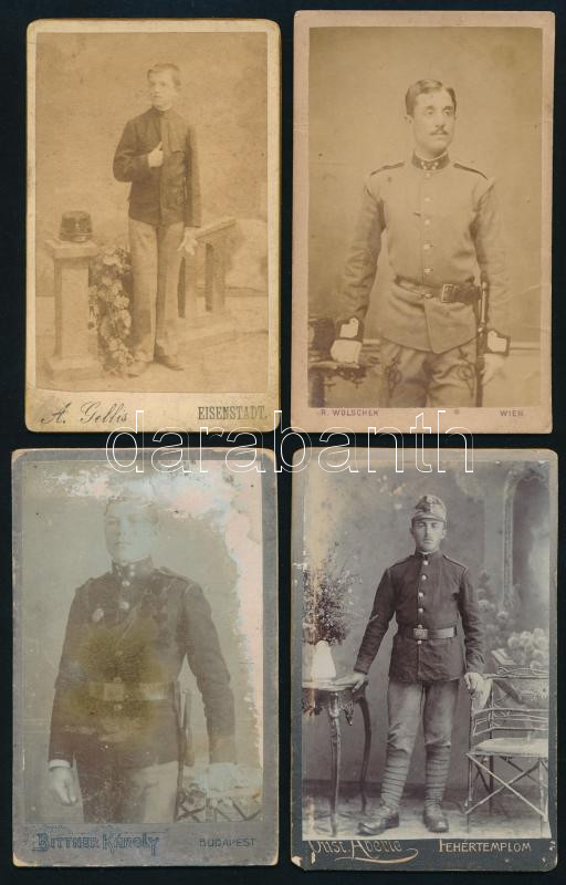 Beschreibung: cca 1880-1900 4 db katonaportré, keményhátú fotó sérülésekkel, 10,5×6,5 cm