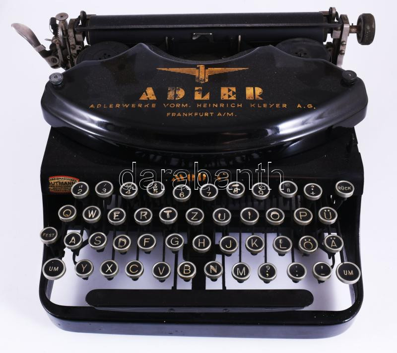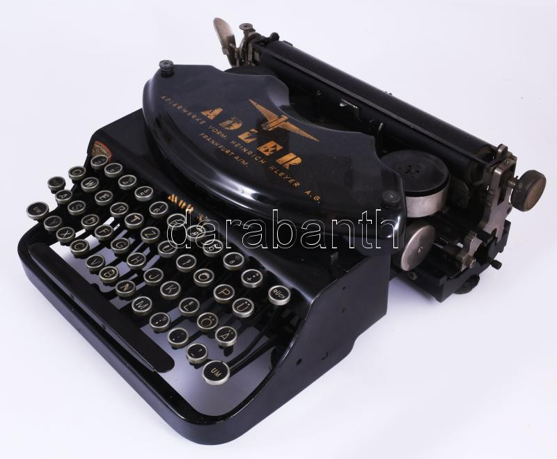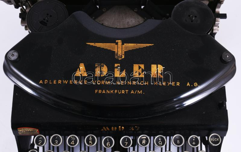 cca 1937 Adlerwerke Vorm. Heinrich Kleyer A.G. "Adler Mod 37" írógép. A Wehrmacht számára készített írógép, tokja nélkül, hiánnyal, cca 33x35 cm /// ca. 1937 Adlerwerke vorm. Heinrich Kleyer A.G. 'Adler Mod 37' typewriter. Typewriter made for the Wehrmacht, without case, with missing parts, approx. 33 × 35 cm."