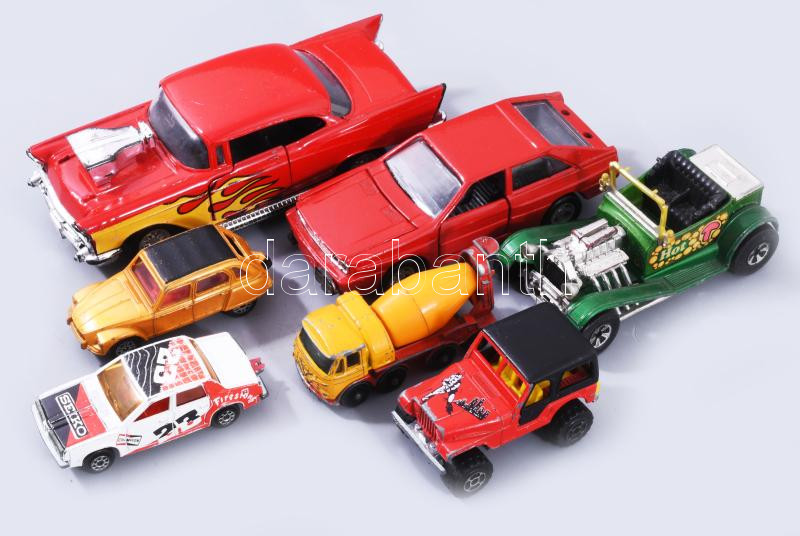 Beschreibung: 7 darab retro játékautó, közte Matchbox, Majorette, stb, h: 15 cm alatt