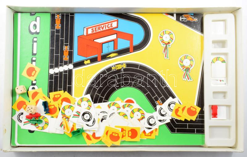 Autóverseny társasjáték, dobozában. https://www.darabanth.com/de/513-Auktion-Philatelie-Postkarten-Numismatik-Kunstwerke-Bucher-Schreibwaren-Schmuck/513.0/Kunst-Dokumente-andere-Sammelgebiete/Spielzeuge~66/Autoverseny-tarsasjatek-dobozaban~II3466859