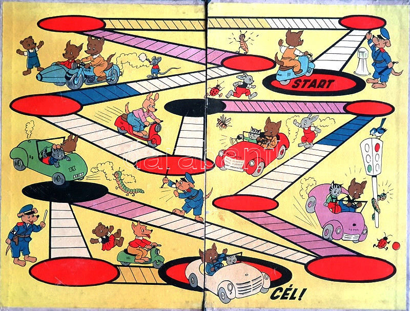 [Budapest, 1960 körül]. [Nyomda nélkül]. Kihajtható, szÃnes játéktábla, mérete: 320x425 mm egy 325x435 méretű kartonlapon.