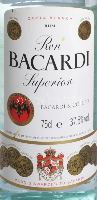 Bacardi rum, 37,5%, 75cl, bontatlan.