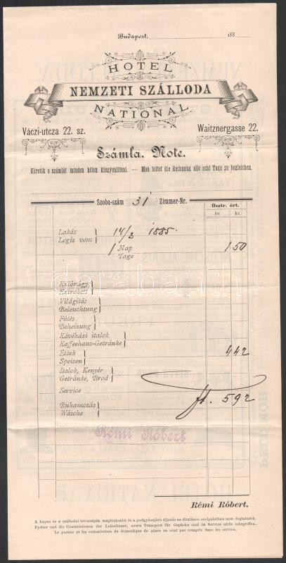1885 Nemzeti Szálloda nagy méretű, reklámos számla https://www.darabanth.com/de/513-Auktion-Philatelie-Postkarten-Numismatik-Kunstwerke-Bucher-Schreibwaren-Schmuck/513.0/Kunst-Dokumente-andere-Sammelgebiete/Werbungen~85/1885-Nemzeti-Szalloda-nagy-meretu-reklamos-szamla~II3470671
