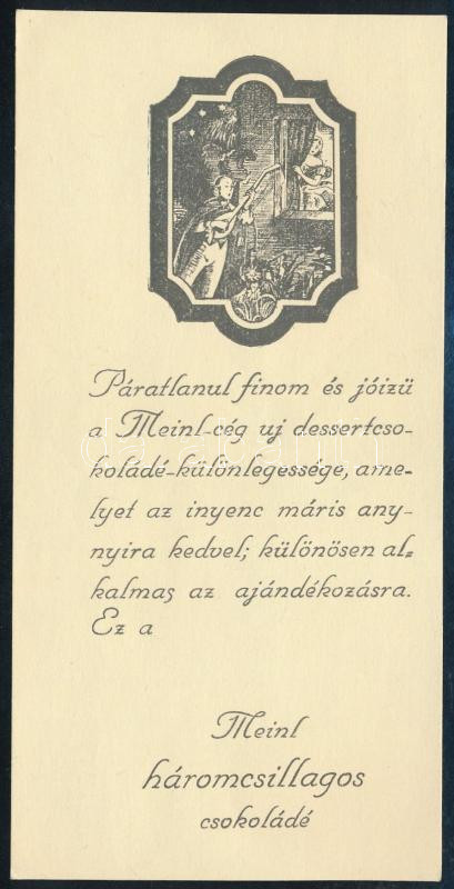 Meinl desszert csokoládé számolócédula https://www.darabanth.com/de/513-Auktion-Philatelie-Postkarten-Numismatik-Kunstwerke-Bucher-Schreibwaren-Schmuck/513.0/Kunst-Dokumente-andere-Sammelgebiete/Werbungen~85/Meinl-desszert-csokolade-szamolocedula~II3465447