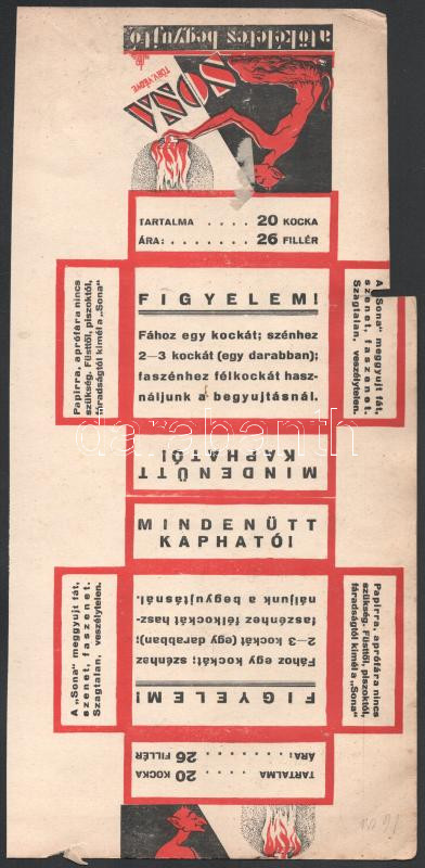 Beschreibung: Sona begyújtó hajtatlan doboza Krampusz reklámmal