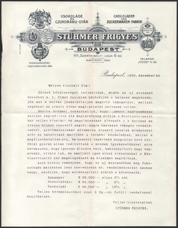 cca 1920 Stühmer Frigyes csokoládégyár 5 db reklám nyomtatvány, fejléc... https://www.darabanth.com/de/513-Auktion-Philatelie-Postkarten-Numismatik-Kunstwerke-Bucher-Schreibwaren-Schmuck/513.0/Kunst-Dokumente-andere-Sammelgebiete/Werbungen~85/cca-1920-Stuhmer-Frigyes-csokoladegyar-5-db-reklam-nyomtatvany-fejleces-levelpapir-stb~II3470626