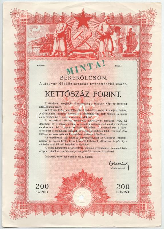1950. Budapest "Békekölcsön" nyereménykölcsön 200Ft-ról, &qu... https://www.darabanth.com/de/513-Auktion-Philatelie-Postkarten-Numismatik-Kunstwerke-Bucher-Schreibwaren-Schmuck/513.0/Numismatik/Aktien-und-Tickets~714/1950-Budapest-Bekekolcson-nyeremenykolcson-200Ft-rol-MINTA-belyegzessel-sorszam-nelkul~II3467992