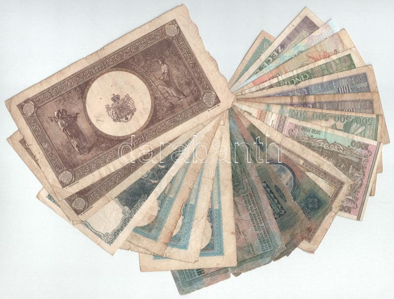 Beschreibung: 19db-os vegyes, román bankjegyből és magyar felülbélyegzett álló tétel T:F,VG